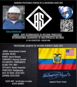 Profesión: Soldador API – Calificado Multiprocesos, SMAW-FCAW-GMAW-GTAW-OFX-