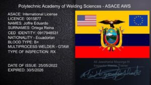 CALIFICA. PARA SOLDAR EN EL AREA NUCLEAR, PETROLERA, ALIMENTICIA, ENERGETICA.