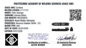 PEDRO SANTIAGO ANDRADE BALTAN- ARMADOR NAVAL – PROFESIONAL DE MANTENIMIENTO INDUSTRIAL EN EL AREA METALMECANICA – LICENCIA# 7171332