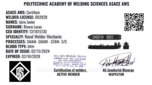 SOLDADOR Y ARMADOR EN LA INDUSTRIA METALMECANICA, NAVAL. LICENCIA # 002029